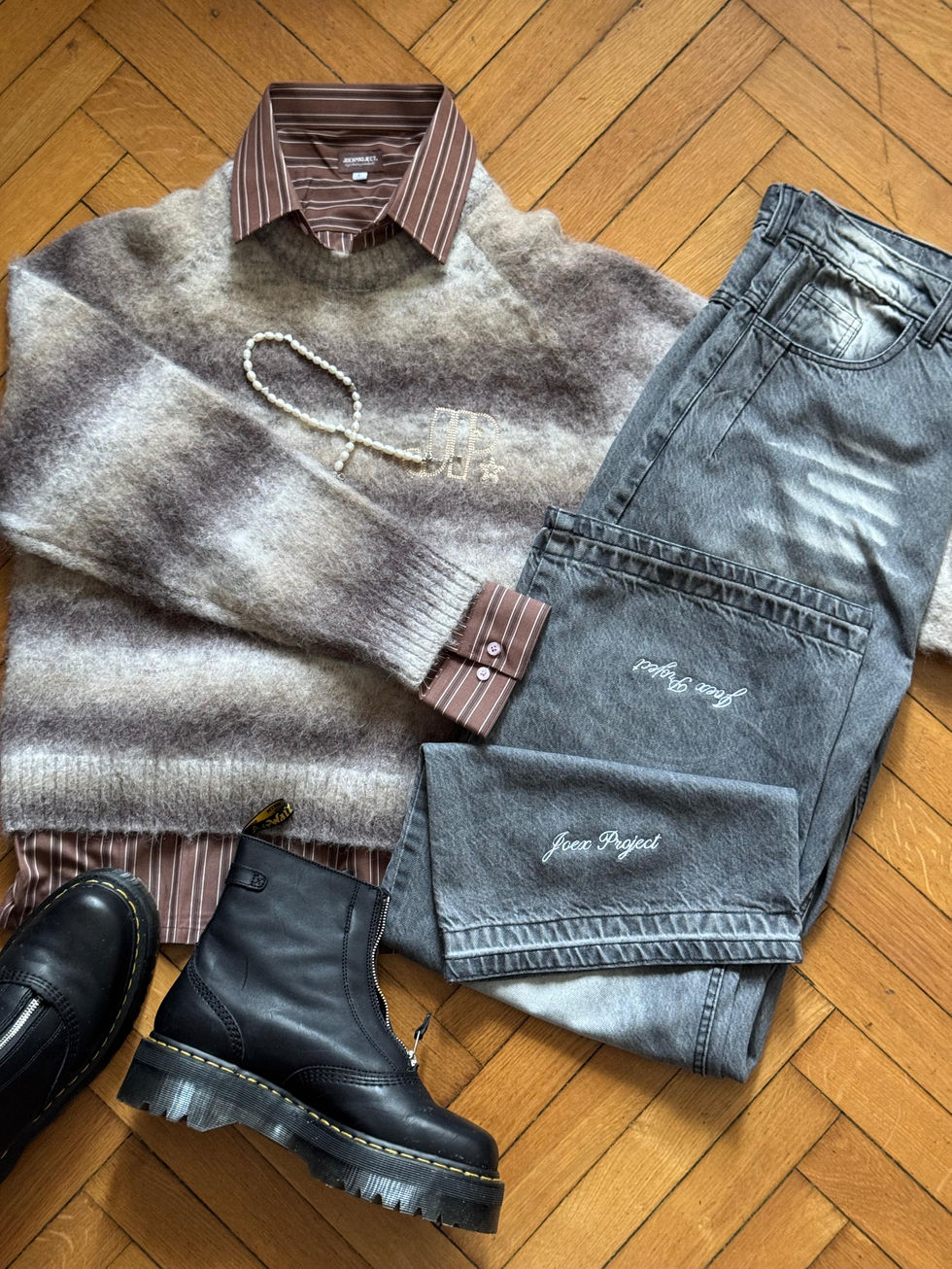 - SAND GRADIENT KNITTED CREWNECK WITH CHAIN STICH LOGO APPLICATION